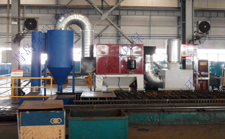 該種除塵方式屬于兩級過濾,切割產(chǎn)生的煙塵先經(jīng)過一個PA4火花捕捉器擋掉火星和濾除大的顆粒,然后再經(jīng)過濾筒式高效煙塵凈化器過濾掉細(xì)小的對人體危害比較大的微塵。
