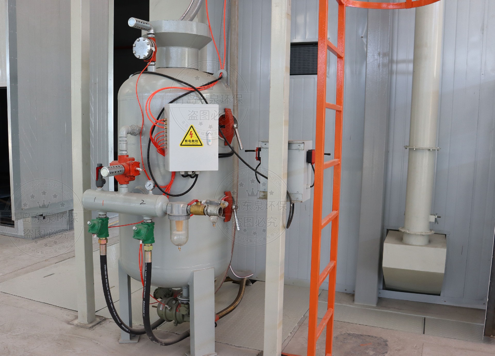 2)噴砂設(shè)備采用1臺(tái)我公司生產(chǎn)的壓入式高效噴砂機(jī),具有高效率、大容量、寬工作壓力范圍(可在0.6-0.75MPa的壓力范圍內(nèi)正常進(jìn)行噴砂作業(yè))、噴砂參數(shù)可任意調(diào)節(jié)(工作壓力、砂流量以及助推流量都可進(jìn)行無(wú)級(jí)調(diào)節(jié))以及性能穩(wěn)定可靠等特點(diǎn);